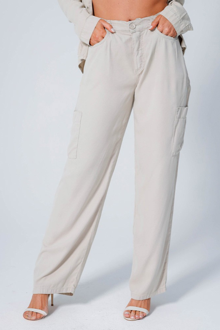 Os bolsos laterais utilitários valorizam a estética e trazem praticidade. O cós estruturado garante ajuste seguro, com fechamento em botão e zíper. Costuras reforçadas e acabamento cuidadoso elevam o padrão da calça. Detalhes técnicos pensados para o dia a dia.