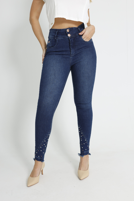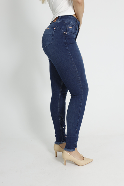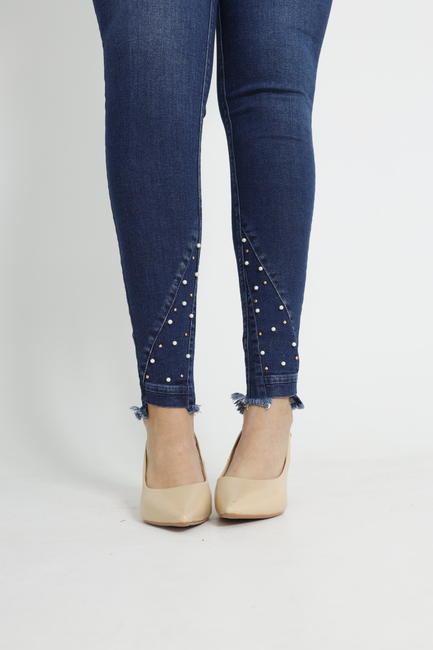 O detalhe da barra com pérolas e desfiados é o que torna essa peça tão especial. A barra perolizada, com seu toque sutil de brilho, confere à calça uma aparência mais sofisticada e moderna, sem perder a praticidade que o jeans oferece. O detalhe em desfiado promove um toque de descontração, trazendo o equilíbrio perfeito.