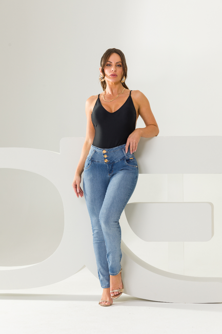 A calça feminina Jeans Edex Sabrina possui a exclusiva tecnologia chapa barriga, com um cós alto de costuras reforçadas e 3 botões de fechamento. Esse recorte especial afina a sua cintura e esconde a barriguinha e os pneuzinhos, modelando o seu corpo desde o cós, até o bumbum e as pernas. Uma calça feita para o máximo conforto e sustentação.