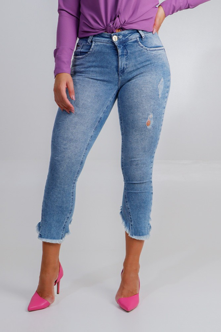 Produzida em jeans encorpado e macio, proporciona conforto prolongado e ótimo encaixe ao corpo. A cintura alta modela a silhueta, enquanto o comprimento cropped garante leveza ao visual. O corte acompanha as curvas de forma natural, oferecendo liberdade nos movimentos. Ideal para quem prioriza bem-estar sem abrir mão do design.