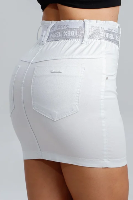 Saia com tecido tecnológico com alto poder de valorizaçăo das curvas da mulher que usa Edex Jeans. Tecnologia responsável por modelar e valorizar o bumbum feminino.