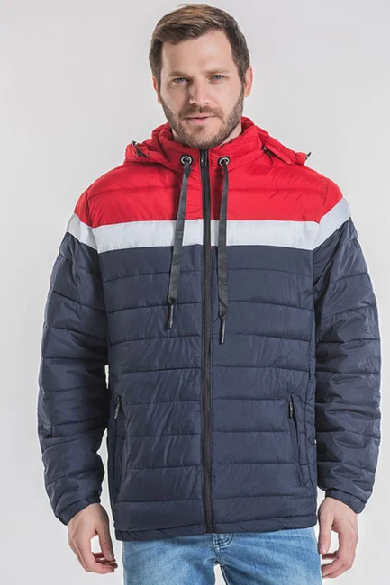 Modelo jaqueta nylon com cores contrastantes, com manga longa, com fechamento em zíper, possui 2 bolsos frontais, conta com elástico no punho, barra e no capuz, e detalhes de costura na peça inteira, dando um toque de sofisticaçăo.
