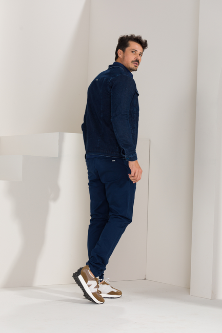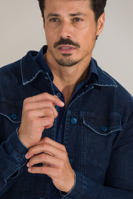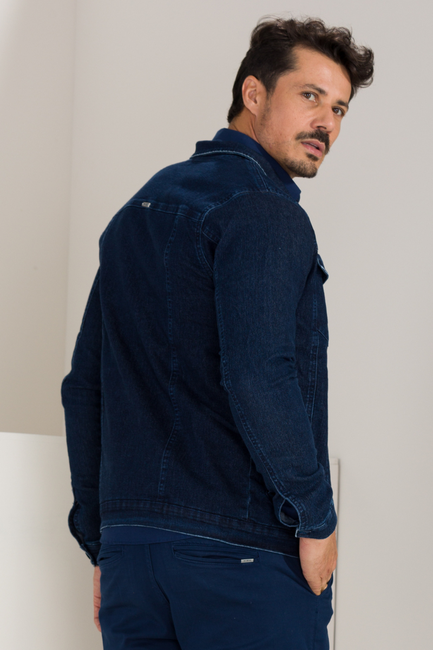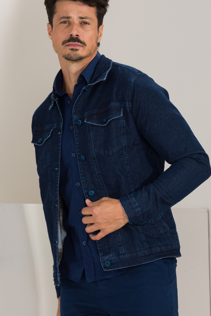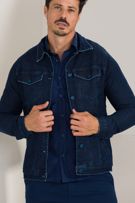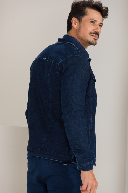 O tecido da jaqueta masculina jeans trucker é composto por algodão, poliéster e elastano, o que garante um conforto sem igual para a sua rotina. Com bastante elastano na composição, ela é confortável o suficiente para os mais diferentes tipos de corpos. O jeans não desbota durante as lavagens e também não perde as características originais com o tempo. A grade da jaqueta masculina jeans trucker Edex vai do P ao GG.