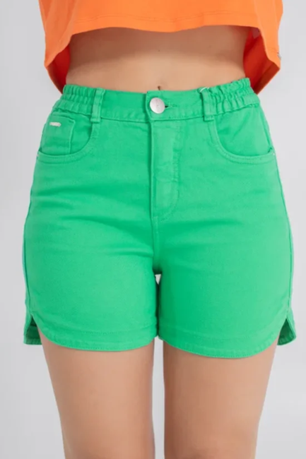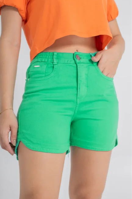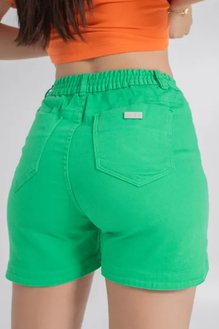 O Shorts Feminino Jeans Slouchy Curto Esmeralda traz cor vibrante e atitude ao visual.